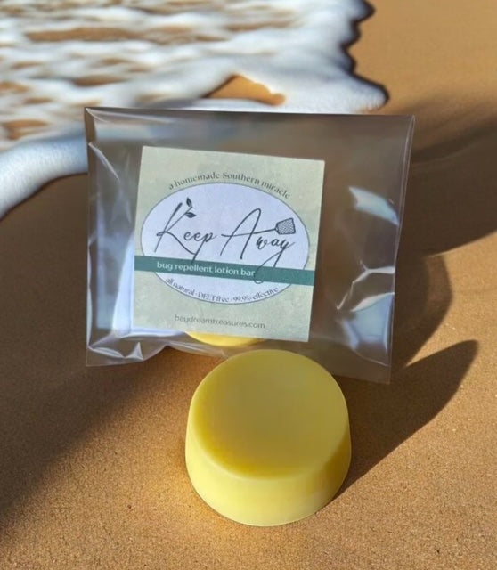 * Same great product as The Original Keep Away bug repellent lotion bar in a mini-size. Ideal for owners who have rental homes, or condos, at the beach or the mountains for their guest/renters.