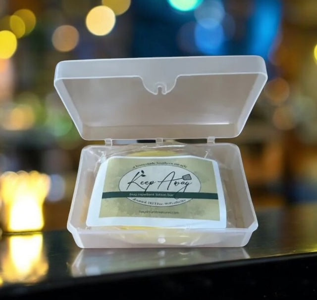 The Keeper is a convenient way to store your Keep Away lotion bars. Perfect for home or travel. Holds one Original bar or two Mini's.